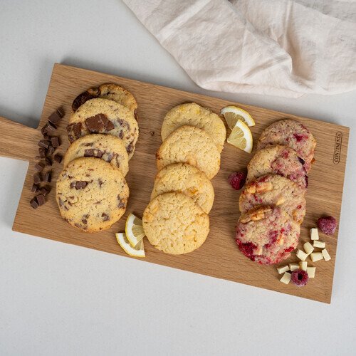 Drei Sorten, ein Blech: klassische Chocolate Chip, frische White Chocolate Lemon und fruchtige White Chocolate Raspberry – alle herrlich soft gebacken.