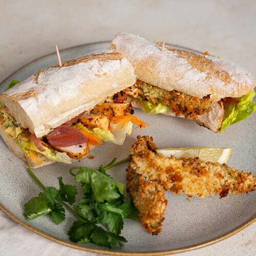 Knusprig, saftig, unwiderstehlich: Sandwich-Baguette mit zarter Hähnchenbrust und Avocado-Wedges aus dem Airfryer - perfekt für alle, die es leicht und lecker mögen!