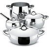 besteht aus je 1x Topf (20 cm), Kasserolle (20 cm), flache Kasserolle (24 cm), Stielkasserolle (14 cm)