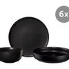 Enthält 6 Essteller (Ø 26 cm), 6 Gourmetteller (Ø 22 cm, Höhe 4,5 cm) und 6 Müslischalen (Ø 14 cm)