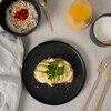 Das Zusammenspiel aus matter und glatter Oberfläche bringt Farbe und Struktur Ihrer Speisen intensiv zum Leuchten – helles Obst, grünes Gemüse oder goldene Toastscheiben entfalten auf dem dunklen Porzellan ihre ganze Strahlkraft.