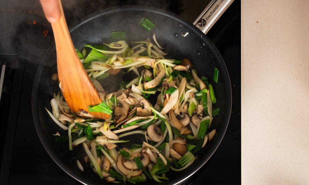 300 g Gemüse wie z.B. Pilze, Pak Choi, Spinat, Frühlingszwiebeln etc.