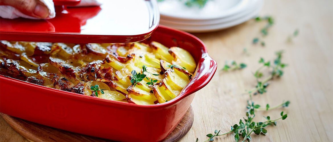 Der besondere Clou bei den Gratinformen ist die homogene Hitzeverteilung. So garen die Zutaten gleichmäßig und schonend durch. On top entsteht eine leckere Kruste. Und weil die Ofenschalen nicht nur praktisch sind, sondern auch gut aussehen, können Sie sie auch gleich zum Servieren nutzen.