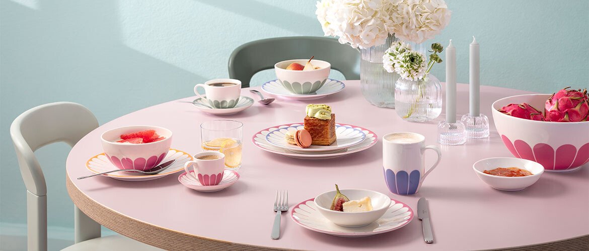 Florales Design, klare Formen, zeitlose Eleganz: Fleur vereint blumige Elemente mit klarer Formensprache. Das Design wirkt modern und vertraut – und erinnert an das Design der 1970er-Jahre. Gefertigt aus hochwertigem Premium Porcelain, liegt es leicht und angenehm in der Hand – alltagstauglich und stilvoll zugleich. Die geschwungenen Kanten und Linien betonen eine schlichte, elegante Ästhetik. Ob Frühstück oder Dinner – Fleur bringt natürliche Leichtigkeit auf den Tisch. Entdecken Sie die fünf Fleur-Serien in wundervollen Farben, die Sie miteinander bunt kombinieren können.