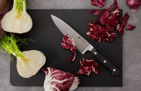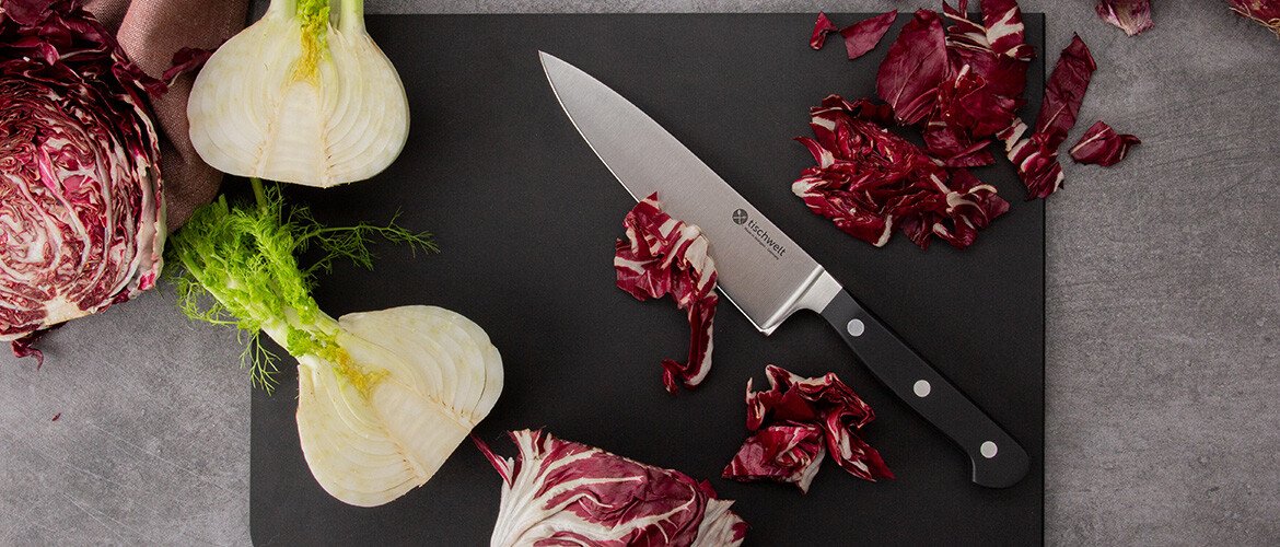 Am Stück im Gesenk geschmiedet, eisgehärtet, ausbalanciert: Das sind unsere tischwelt Messer Classic aus Solingen. Wer gerne kocht, wird sie lieben. Ihre klassische Optik mit stabilem dunklem Kunststoffgriff macht die verschiedenen Messerarten für jede Gelegenheit zu einem unverzichtbaren Küchenaccessoire. Schneiden Sie präzise und glatt Ihr Gemüse oder hacken Sie es grob, filetieren Sie elegant einen Fisch und genießen Sie mit sauberen Schnitten ein Steak. Unsere äußerst scharfen tischwelt Messer Classic liegen optimal in der Hand und setzen reibungslose Schnitte. Entdecken Sie unsere tischwelt Messer der Serie Classic und nutzen Sie ihre Schärfe, Präzision und top Qualität.