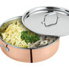 Der Gourmettopf der Serie Culinox der Qualitätsmarke Spring verfügt über eine emaillierte Kupferlage außen und ein mehrschichtiges Edelstahlmaterial innen, welche in Kombination eine extrem schnelle und gleichmäßige Wärmeleitung und eine optimale Hitzespeicherung bis zum Topfrand garantieren.