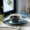 variierende Farbverläufe und willkürlich angeordnete Sprenkel prägen den Look der Geschirrstücke