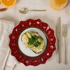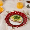 Die roten Brotteller Toy’s Delight von Villeroy & Boch setzen leuchtende Akzente auf jeder festlich gedeckten Weihnachtstafel. Der weiße Spiegel lässt Brötchen, kleine Beilagen oder Gebäckstücke elegant wirken, während die sternförmig geschwungene Fahne in kräftigem Rot mit detailreichen Weihnachtsmotiven geschmückt ist. Figuren wie Nussknacker, Trommel oder Geschenke erinnern an traditionelle Weihnachten und schaffen ein Bild voller Wärme und Geborgenheit.