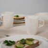 Auf den Frühstückstellern mit 22 cm haben Croissants, Käse oder ein Stück Apfelkuchen ihren Platz. In den Bowls à 0,4 l lassen sich Müsli, Obstsalat oder eine dampfende Suppe an kalten Tagen servieren. Die Henkelbecher mit 0,29 l fassen den ersten Kaffee am Morgen, duftenden Tee am Nachmittag oder heiße Schokolade am Abend. So begleitet das Set Sie vom Morgenlicht bis zum Feierabend.