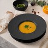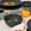 Die Speiseteller mit 27 cm bieten Platz für Hauptgerichte, bei denen Farben und Texturen auf dem dunklen Untergrund besonders intensiv wirken. Auf den großzügigen Pastatellern mit 29 cm erscheinen cremige Pasta, Risotto oder Antipasti fast wie auf einer Bühne – kontrastreich und modern. Die Bowls mit 0,43 l Volumen eignen sich für Suppen, Currys, Salate oder auch Desserts, deren Farben durch den dunklen Hintergrund noch kräftiger leuchten.