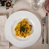 Mit einem Durchmesser von 28 cm bieten die Teller die ideale Bühne für fein angerichtete Gerichte: zarter grüner Spargel mit Sauce Hollandaise, eine klassische Blanquette de Veau oder geschmorte Artischocken entfalten auf dem hellen Porzellan ihre vollkommene Eleganz. Die breite Fahne rahmt die Speisen wie ein Passepartout und verleiht der Präsentation eine ruhige, ausgewogene Wirkung.